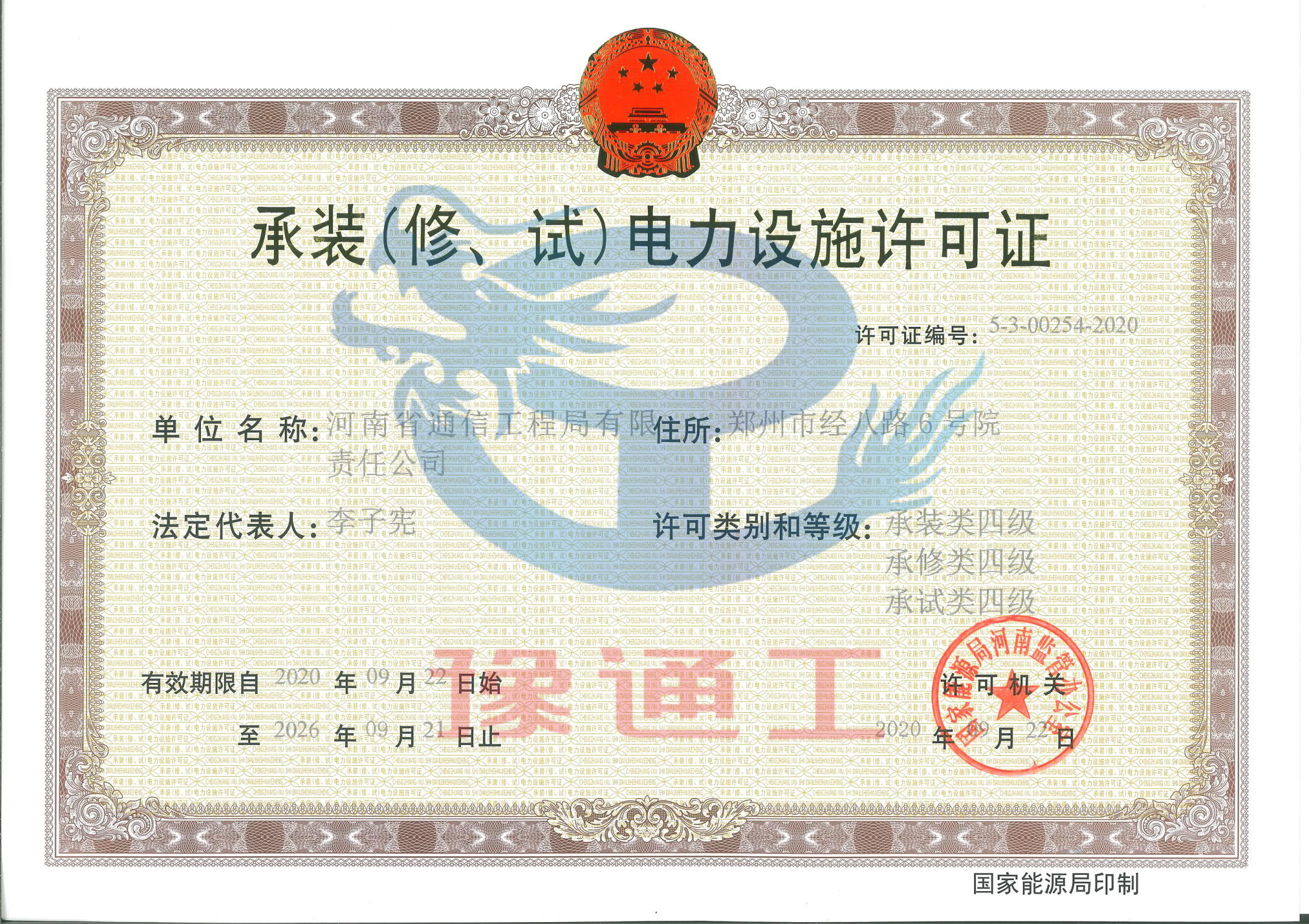 承裝(修、試)電力設(shè)施許可證