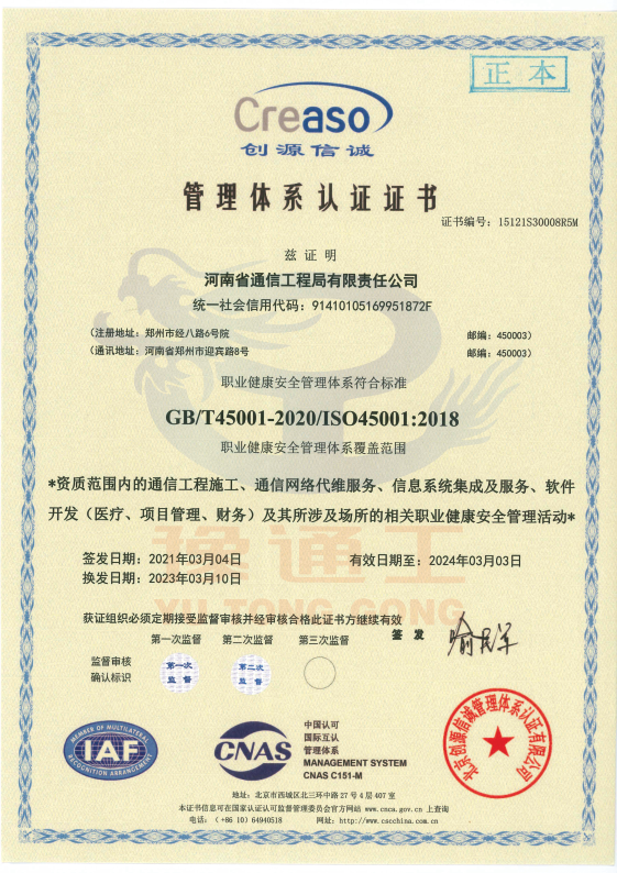 管理體系認(rèn)證證書(shū)(職業(yè)健康安全管理)