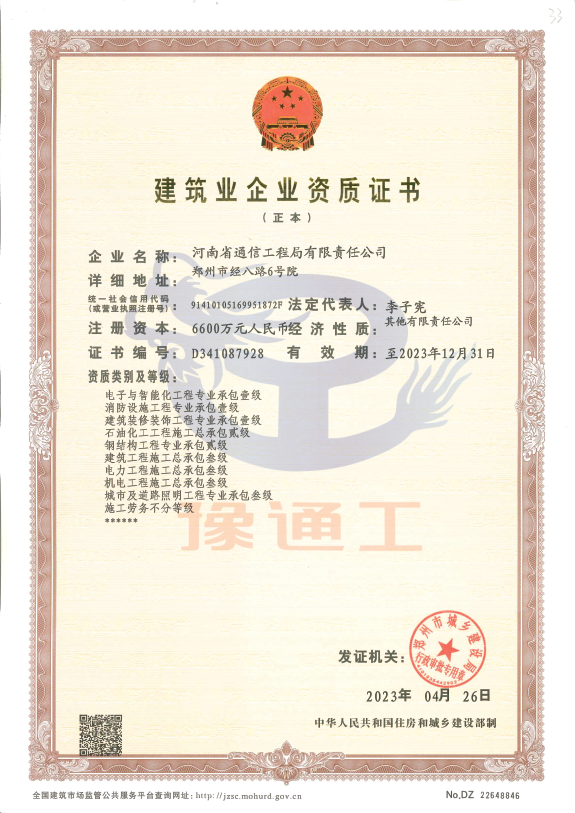 通信工程施工總承包壹級(jí)