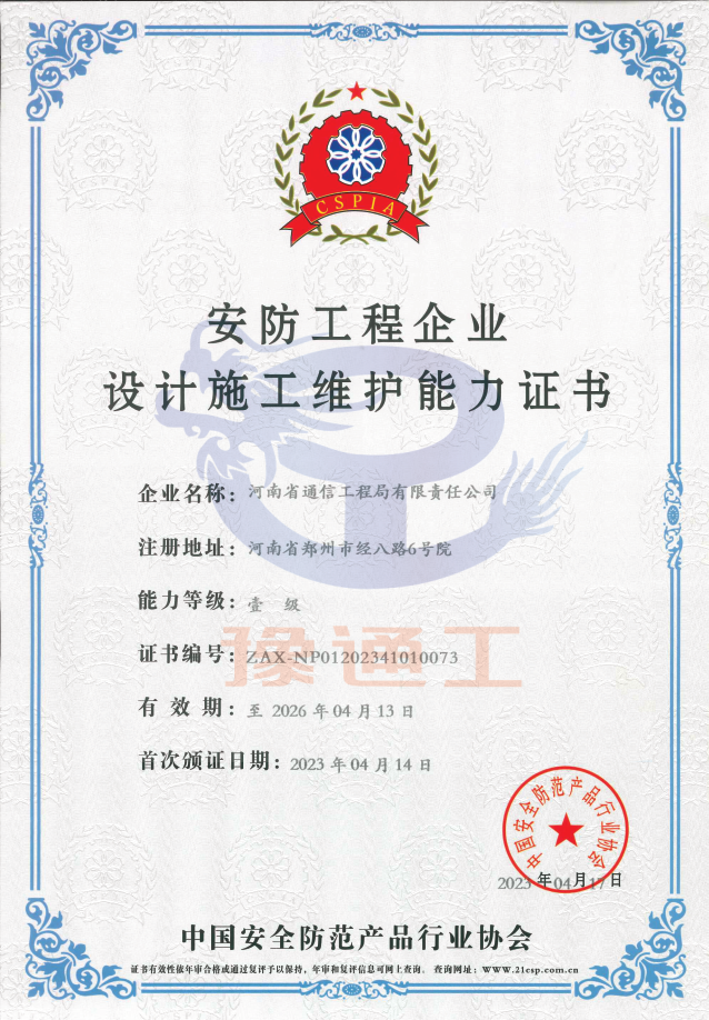 安防工程企業(yè)設(shè)計(jì)施工維護(hù)能力證書(shū)